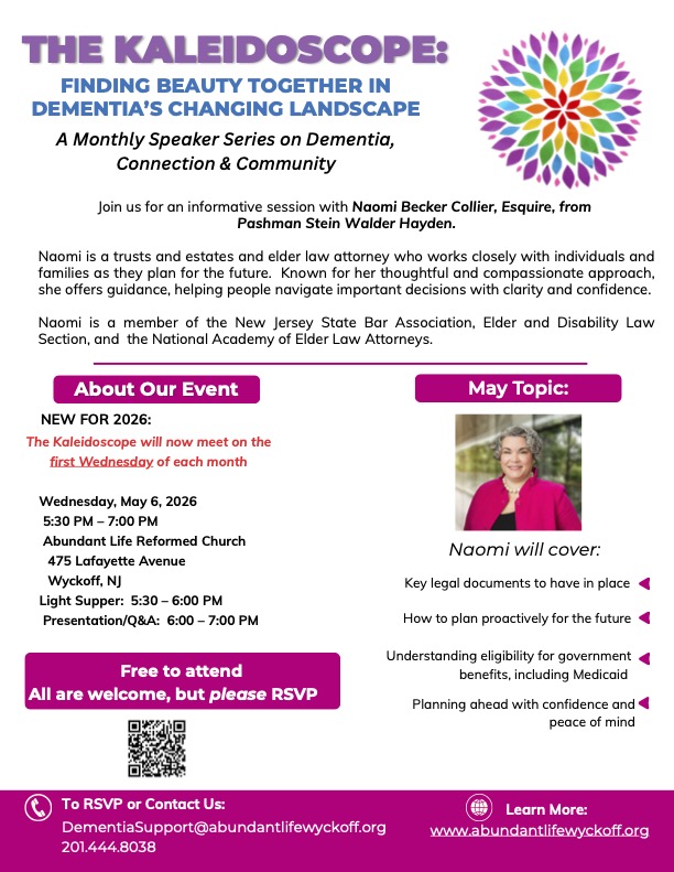 Our next monthly speaker series from the Kaleidoscope will be an informative session with Naomi Becker Collier, Esq., from Pashman Stein Walder Hayden.